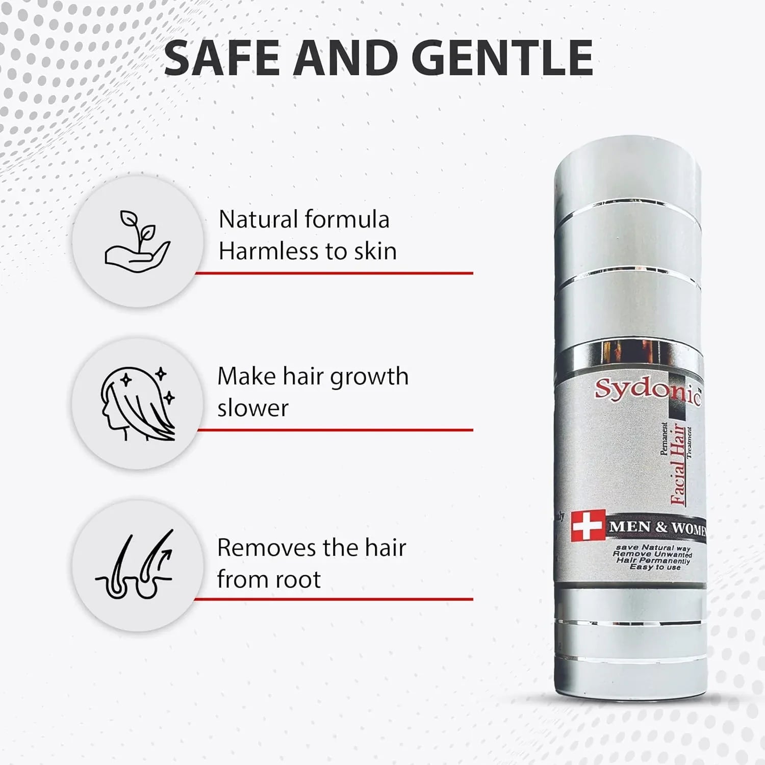 - Sydonic penetrates the skin to dissolve hair and reduce regrowth over time, making it an ideal choice for "cream for removing hair permanently.